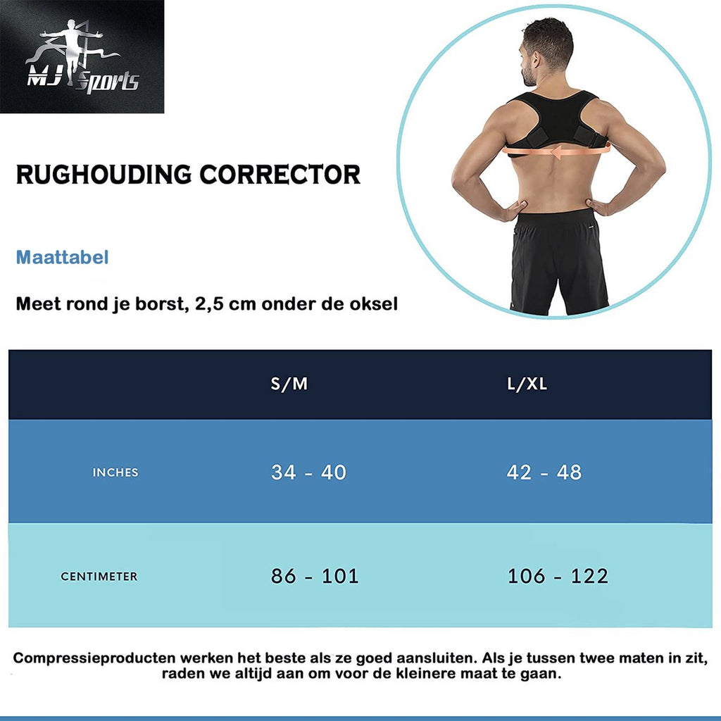 De corrector is geschikt voor tieners, mannen en vrouwen met een borstomtrek tussen de 86 en 122 centimeter: